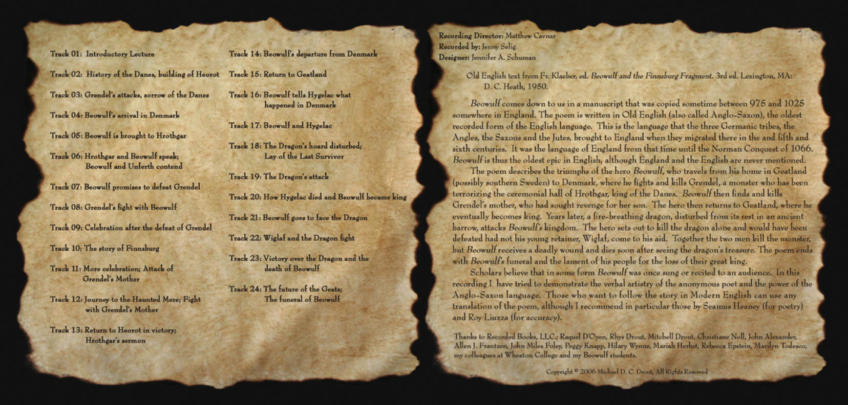 Anglo-Saxon Aloud: Greatest Hits. A 2-CD set of Old English poetry with commentary and Modern English translations.